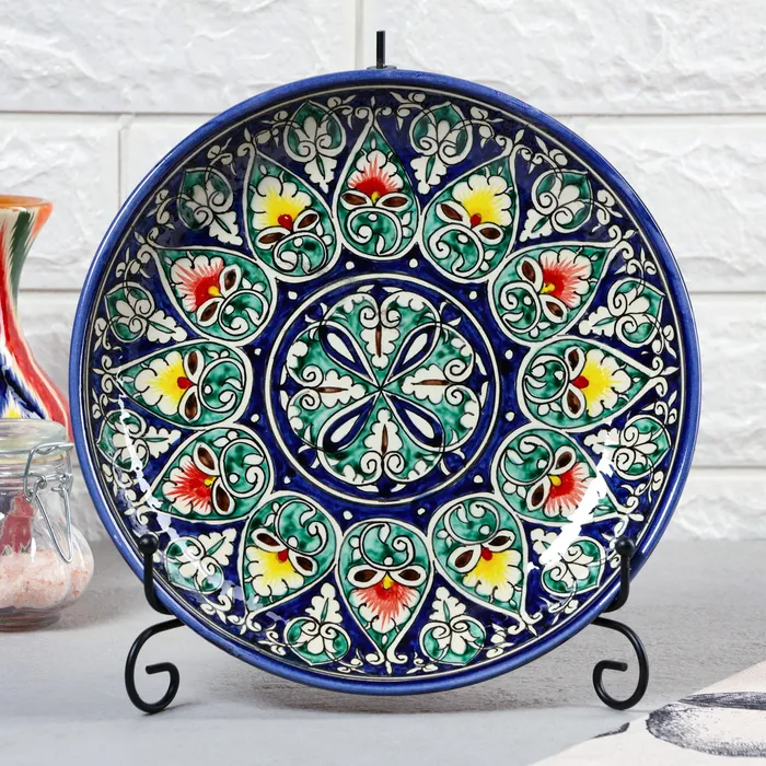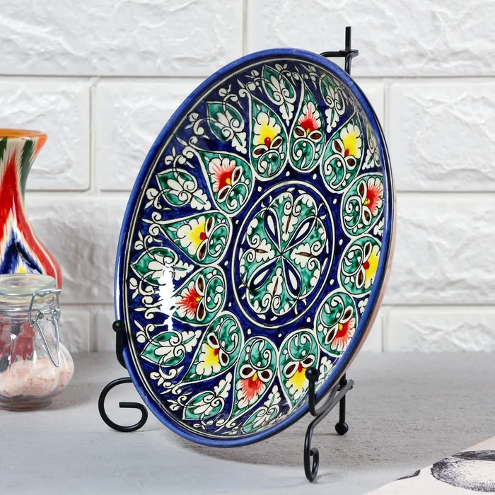 Ляган узбекский Риштанская керамика «Узоры», d=25 см, синий МИКС — Характеристики