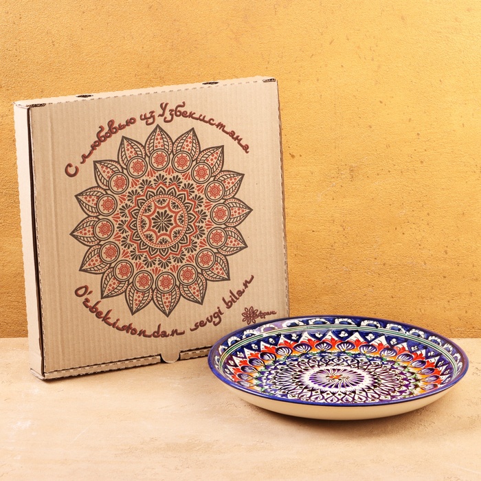 Эта керамическая тарелка отлично подойдет для сервировки домашних обедов и праздничных застолий. Растительный орнамент создает атмосферу традиционного узбекского стиля. Глазурованная поверхность облегчает уход за посудой, а ручная работа гарантирует уникальность каждой тарелки. Ее можно использовать в микроволновке, что делает ее практичной в повседневной жизни.