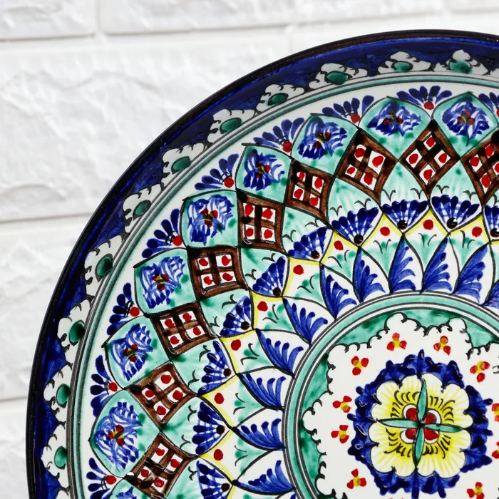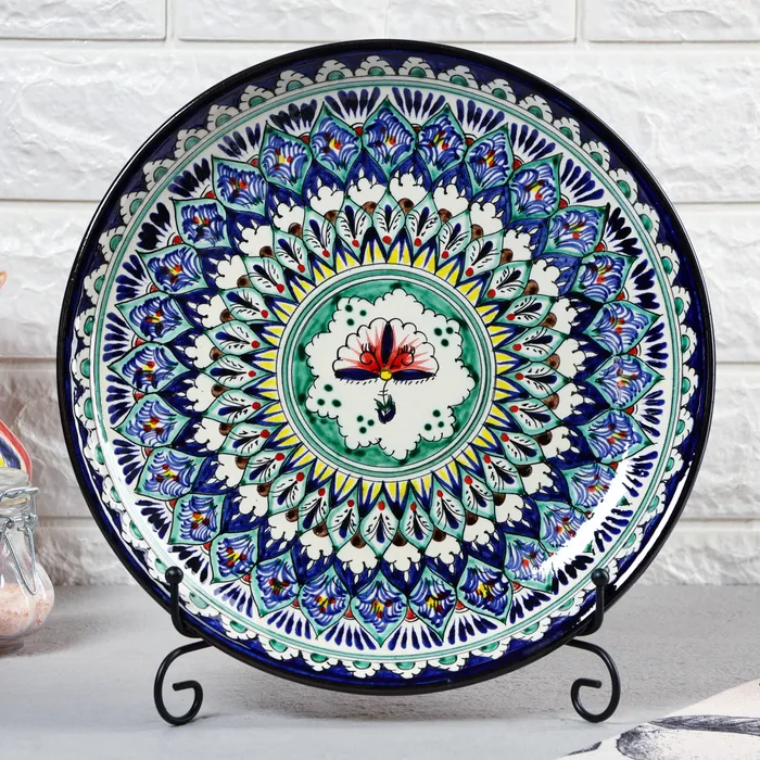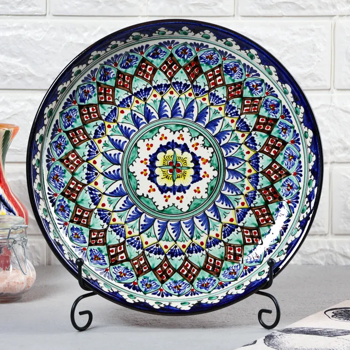 Ляган узбекский Риштанская керамика "Узоры" для плова, 28 см, синий — Характеристики