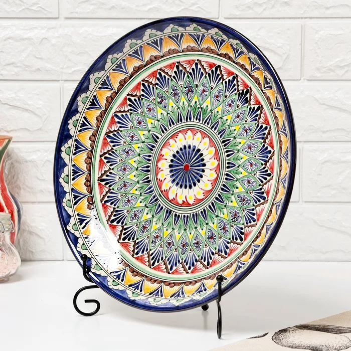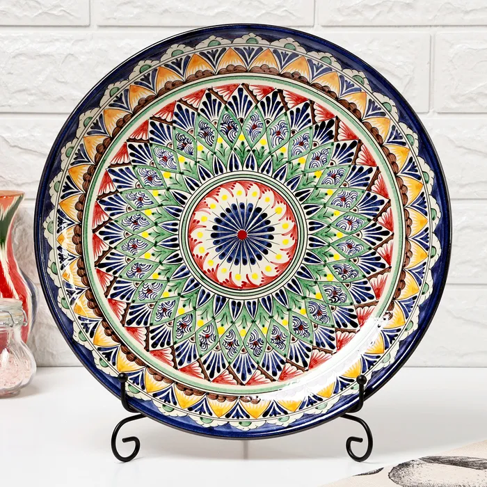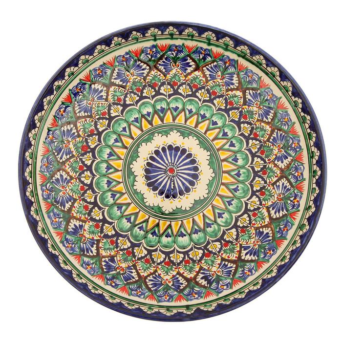 Ляган узбекский Риштанская керамика "Узоры" для плова, 31 см, синий — Характеристики