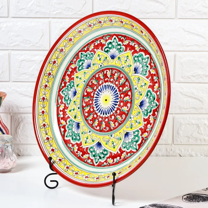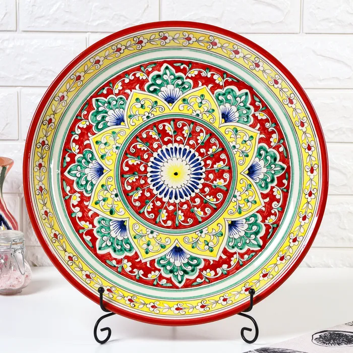 Ляган узбекский Риштанская Керамика "Узоры" для плова, 37 см, красный, МИКС — Характеристики