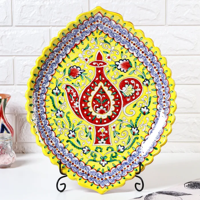Ляган узбекский Риштанская Керамика "Узоры" для плова, 42 см, овальный, жёлтый, МИКС — Характеристики