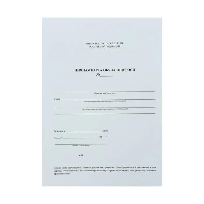 Личная карта обучающегося А4, 2 листа, офсет 160 г/м²