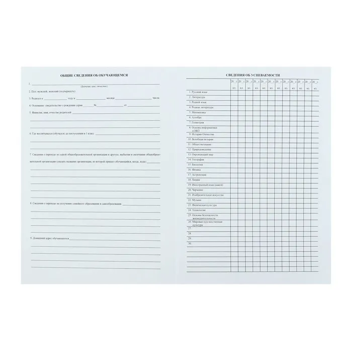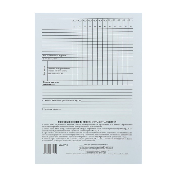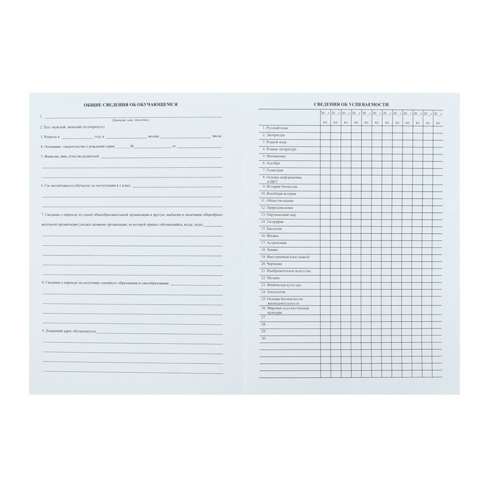 Личная карта обучающегося А4, 2 листа, офсет 160 г/м² — Характеристики