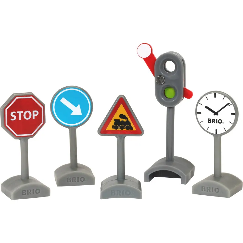 Brio Дорожные знаки 33864 - это набор знаков для железной дороги, в котором собраны все важные указатели для реалистичной игры. Пять мягких пластиковых указателей. Механический сигнальный указатель показывает красный или зеленый сигнал в зависимости от выбора. Совместим с миром Brio World.