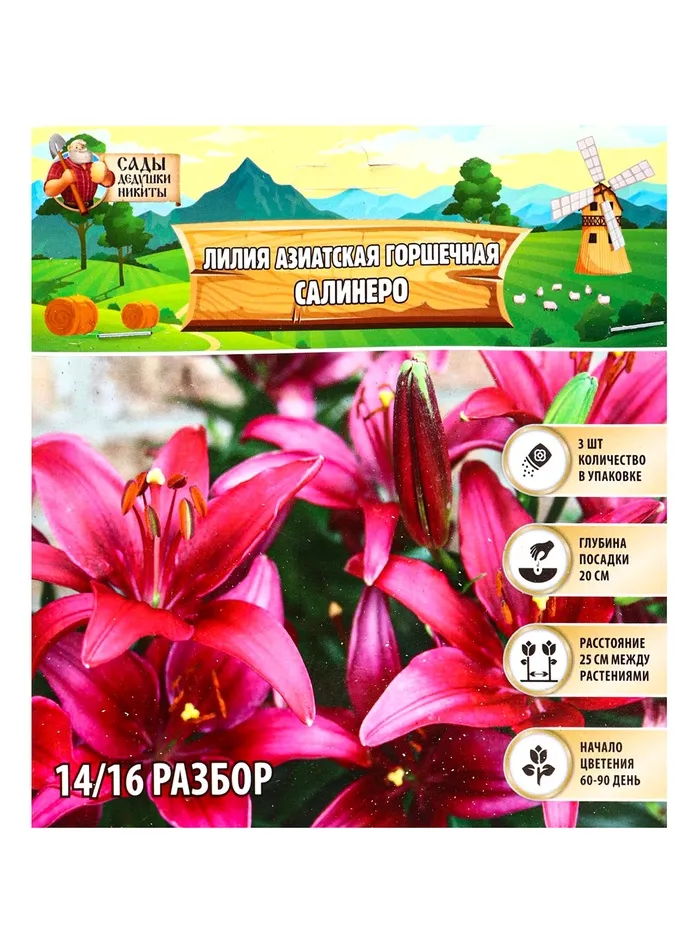 Лилия Азиатская горшечная «Салинеро», луковица в пакете с перфорацией, р-р 14/16, 3 шт. — Характеристики