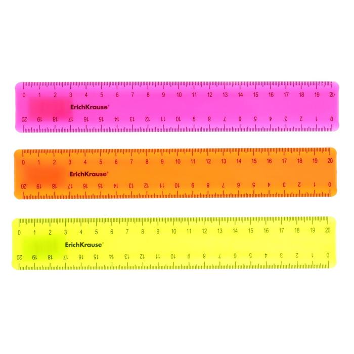 Линейка 20 см ErichKrause «Neon Solid», пластик, непрозрачная. двухсторонняя шкала, микс — Характеристики