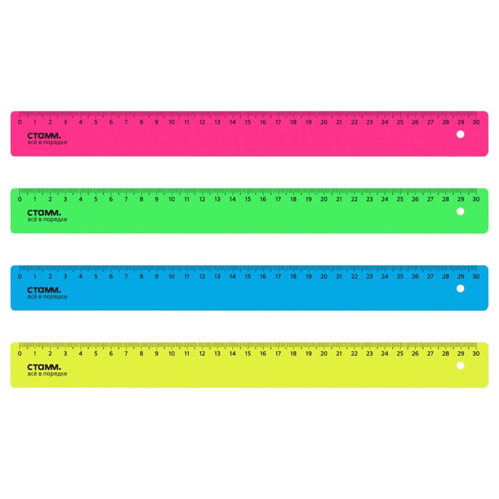 Линейка 30 см Стамм Neon, пластиковая, непрозрачная, неоновые цвета, европодвес, микс (цена за 1 шт.)