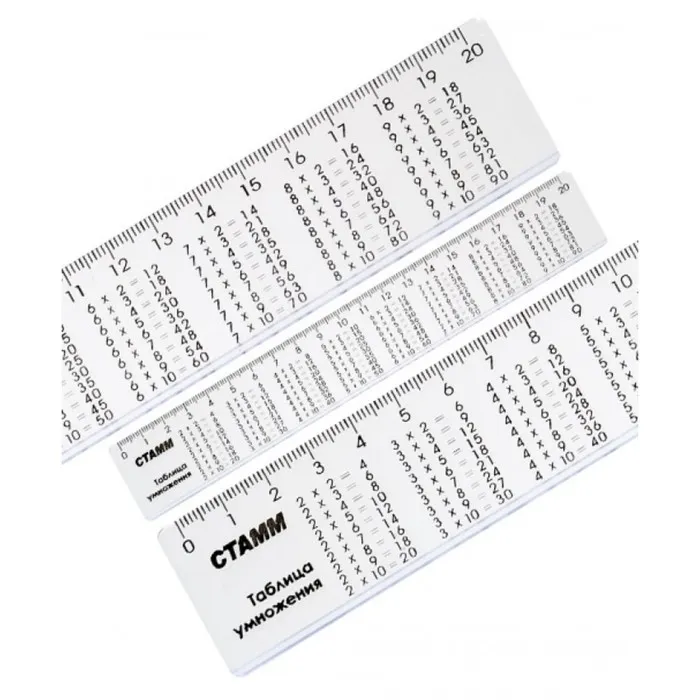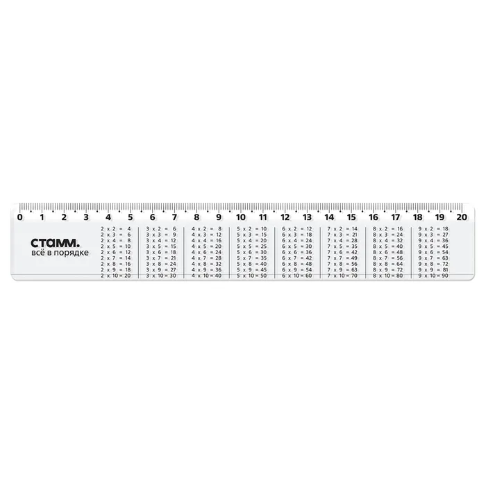 Линейка 20 см Стамм "Таблица умножения", со справочным материалом, пластиковая, прозрачная, бесцветная — Характеристики