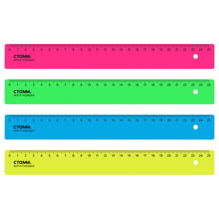 Линейка 25 см Стамм, пластиковая, непрозрачная, неоновые цвета, европодвес, микс