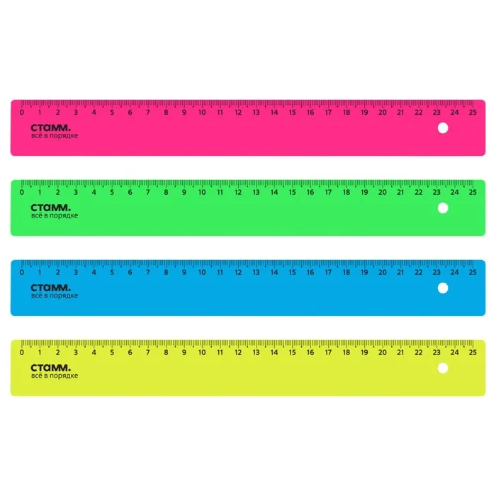 Линейка 25 см Стамм, пластиковая, непрозрачная, неоновые цвета, европодвес, микс — Характеристики