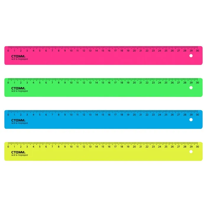 Линейка 30 см Стамм Neon, пластиковая, непрозрачная, неоновые цвета, европодвес, микс (цена за 1 шт.) — Характеристики