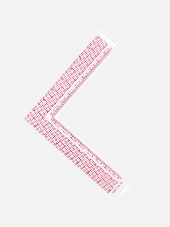 Такая линейка незаменима при кройке и шитье, особенно когда требуется отмерить угол или прочертить линию. Благодаря прямому углу вы будете уверены, что выкройка сделана с точностью до миллиметра и ваше платье или кофточка сядут по фигуре.