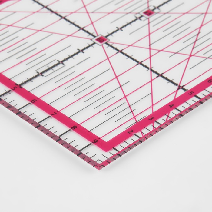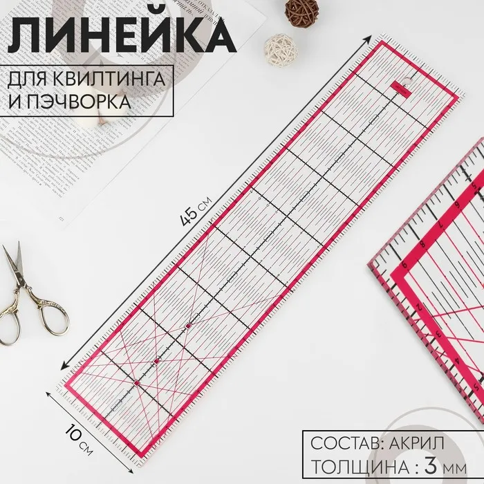 Линейка для квилтинга и пэчворка, 45 × 10 см, толщина 3 мм, цвет прозрачный/розовый — Характеристики