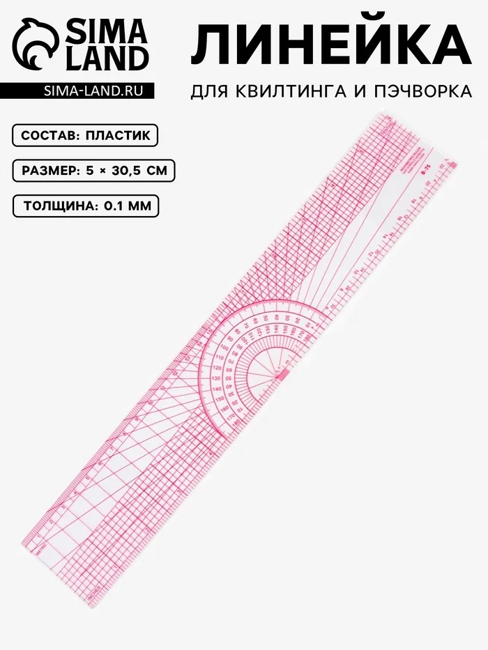 Линейка для квилтинга и пэчворка, 5×30.5×0.1 см, розовая — Характеристики