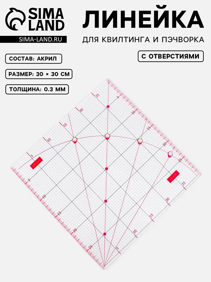 Линейка для квилтинга и пэчворка, с отверстиями, 30×30 см, розовая — Характеристики