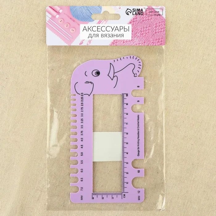 Линейка для спиц и крючков «Слоник» помогает вязальщицам быстро определять диаметр инструмента и держать порядок среди рабочих принадлежностей. Оригинальная форма делает её удобной и заметной, а компактный размер позволяет хранить аксессуар в пенале или сумке для рукоделия.