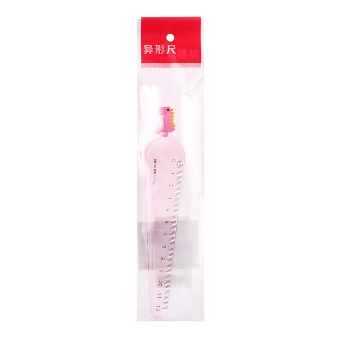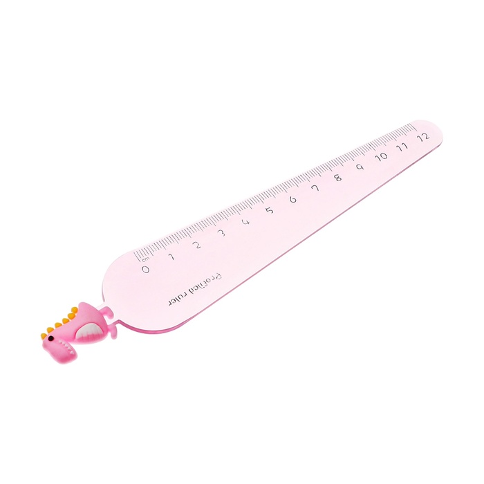 Линейка пластиковая 12 см "Динозаврик", розовая