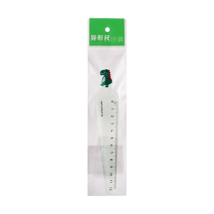 Линейка пластиковая 12 см "Динозаврик", зелёная