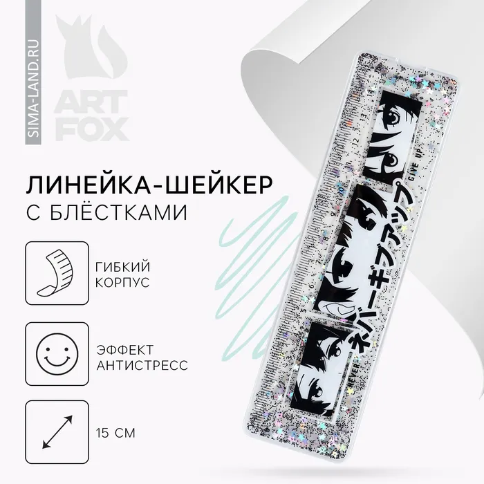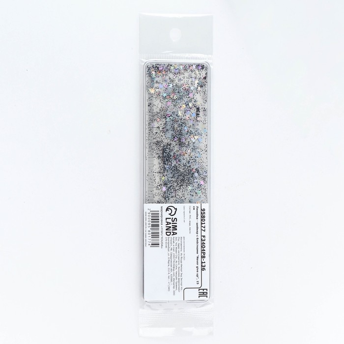 Линейка - шейкер с блёстками «Never give up», 15 см — Характеристики