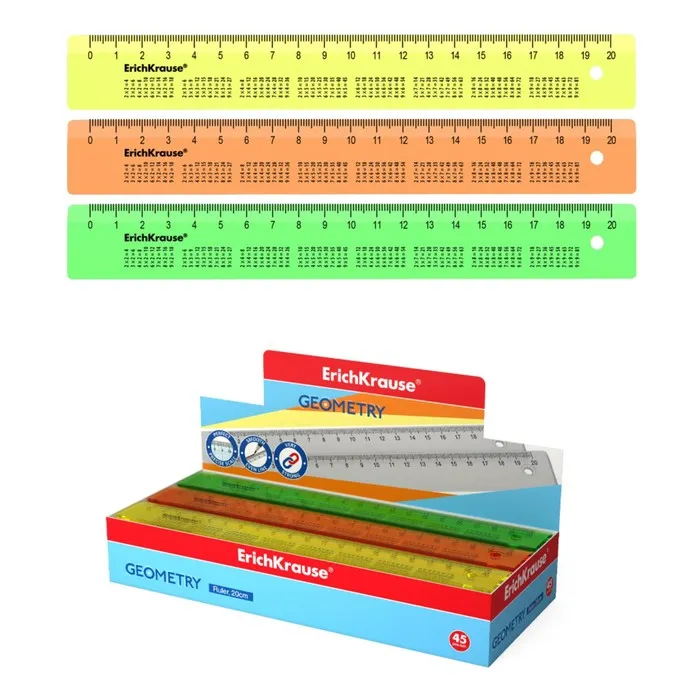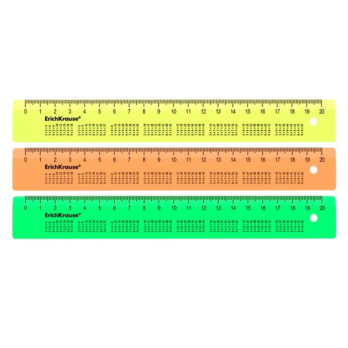 Набор прозрачных справочных линеек из высококачественного пластика. Четкая печать односторонней шкалы и таблицы умножения. Длина разметки – 20 см.