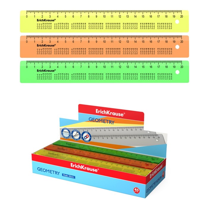 Линейка справочная 20 см, таблица умножения, ErichKrause Neon, пластик, МИКС — Характеристики