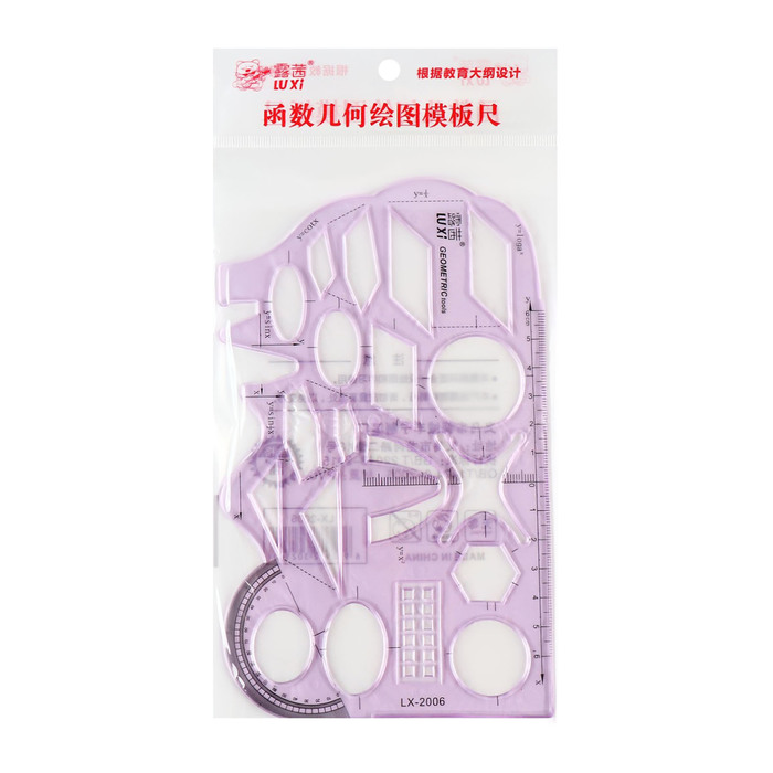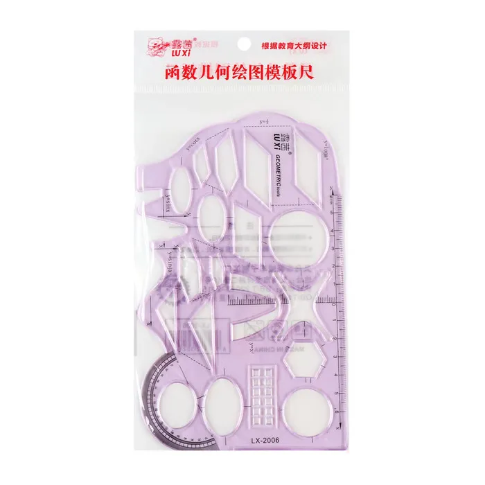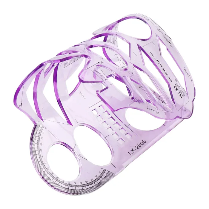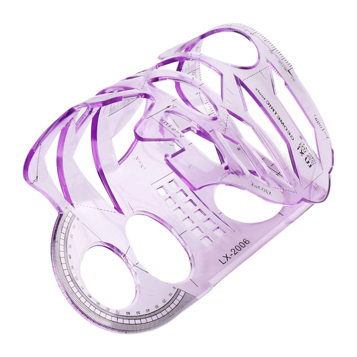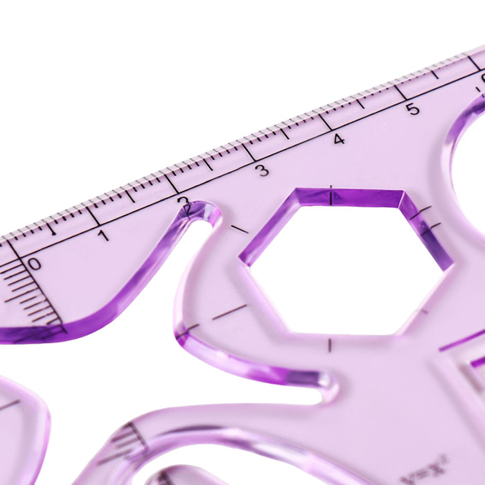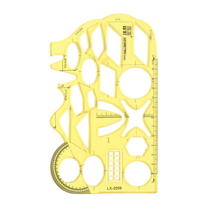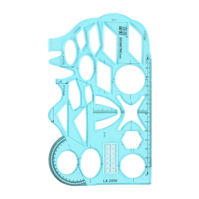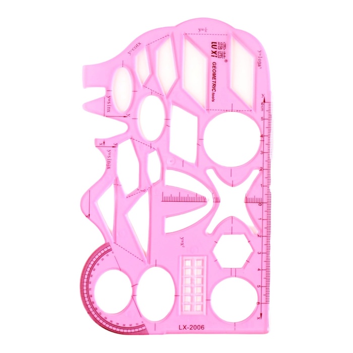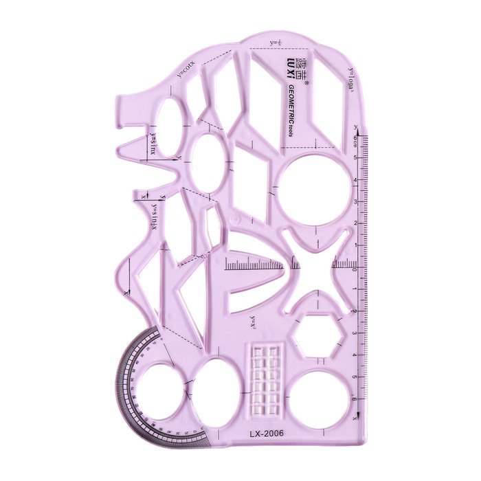 Линейка-трафарет, пластик, с транспортиром, для черчения фигур, МИКС — Характеристики