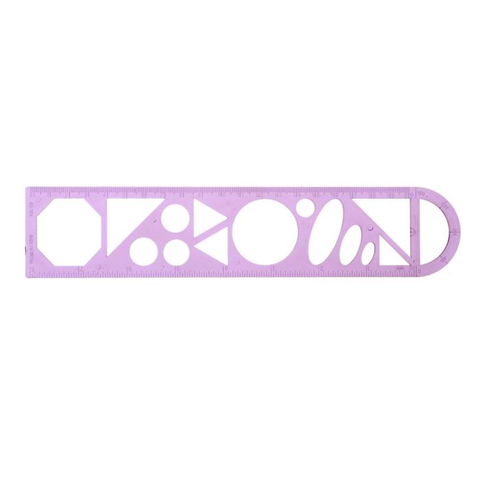 Линейка трафарет - транспортир, 3 в 1, 20 см, тонированная, флуоресцентная, МИКС — Характеристики