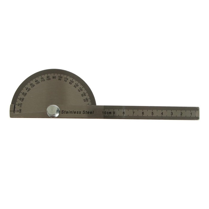 Линейка-транспортир из нержавеющая стали (10 см) будет верным помощником при построении различного рода чертежей, схем и графических рисунков. Линии получатся идеально ровными благодаря такому же ровному краю. Состав: металл.