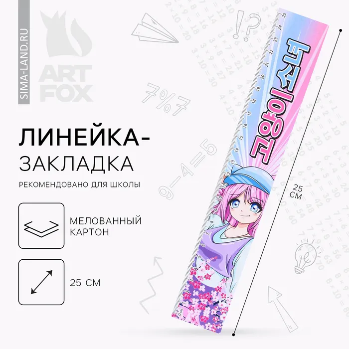 Линейка-закладка, картон, 25 см «Аниме» — Характеристики