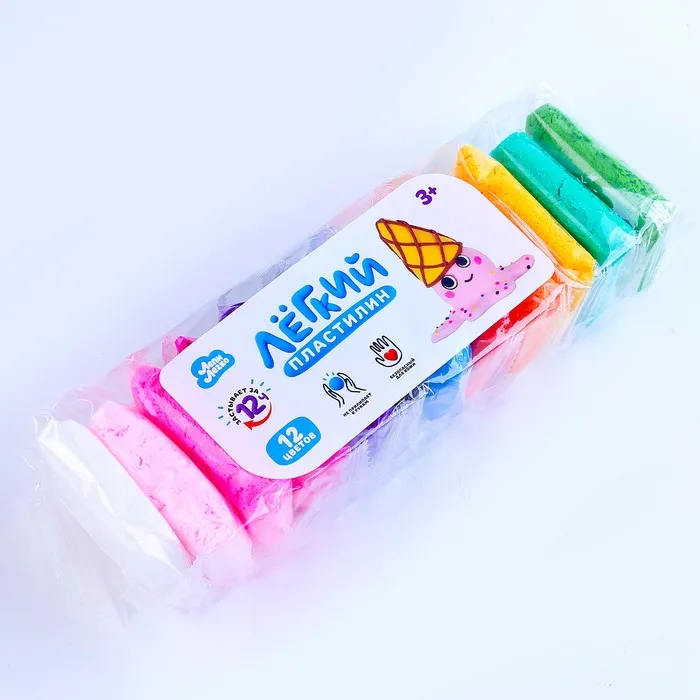 Лёгкий пластилин — необычная масса для лепки. Она не прилипает к поверхностям и абсолютно безопасна для кожи. Цвета можно смешивать между собой и создавать новые оттенки. Пластилин можно крутить, сворачивать и придавать любую форму. Набор для лепки вдохновит на безграничное творчество.
