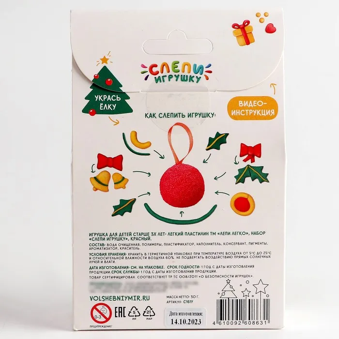 - Внутри набора вы найдёте ссылку на видео-инструкцию по лепке ёлочной игрушки.
