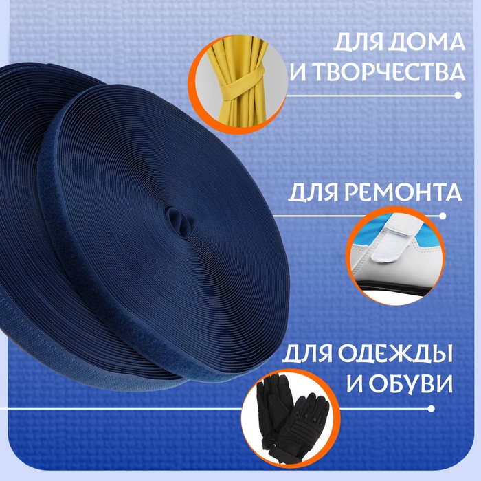 Липучка, 20 мм, 25±1 м, тёмно-синий — Характеристики