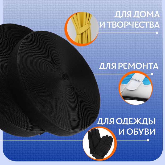 Длинная пришивная липучка чёрного цвета шириной 40 мм — прочный и функциональный крепёж для масштабных швейных работ, текстильного производства и ремонта. Лента длиной около 25 метров подходит для одежды, спортивных сумок, мебельных чехлов и других изделий, где важны выносливость и строгий внешний вид. Чёрный цвет гармонично сочетается с тёмными тканями и устойчив к загрязнениям.