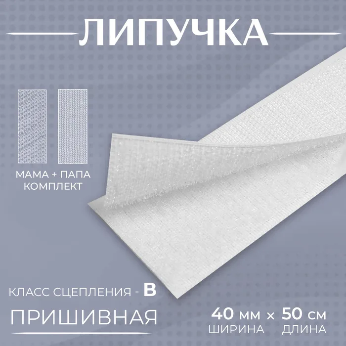 Пришивная липучка белого цвета шириной 40 мм — надёжный и функциональный элемент для шитья, ремонта и текстильного дизайна. Отрезок длиной 50 см подходит как для мелких проектов, так и для усиления креплений в одежде, сумках или чехлах. Белый цвет легко сочетается с разными тканями, создавая аккуратный и завершённый внешний вид.