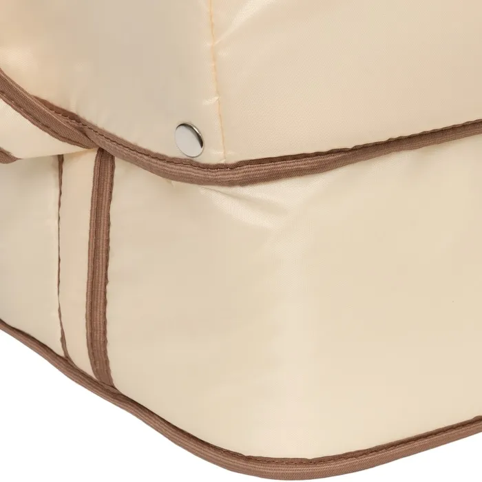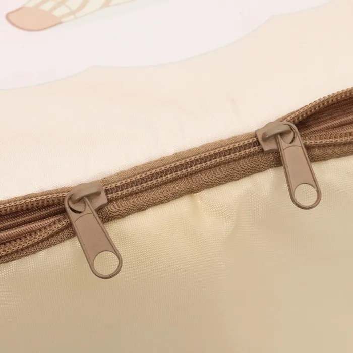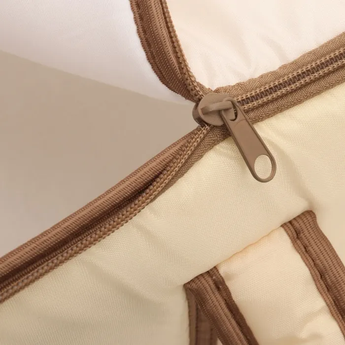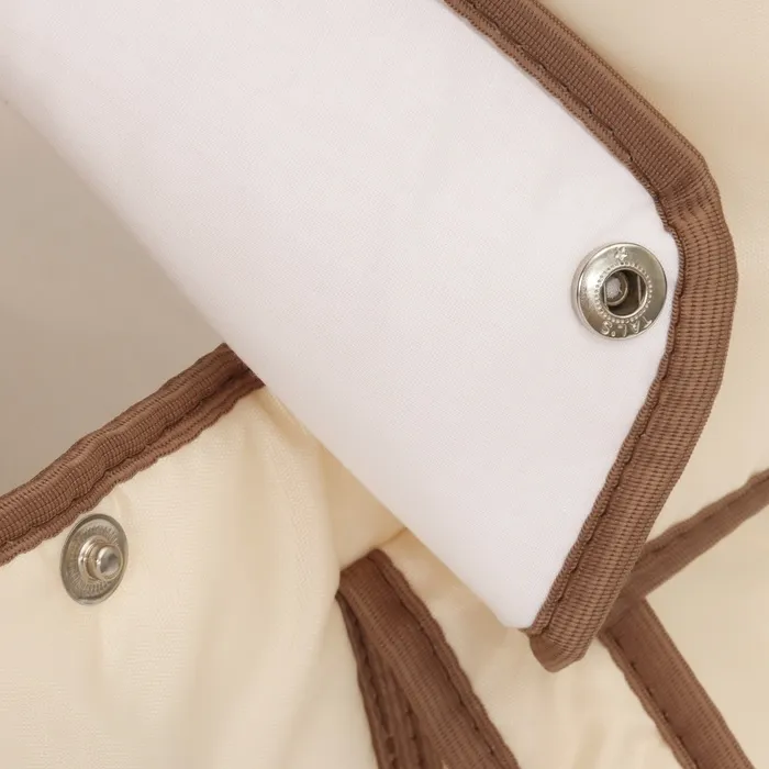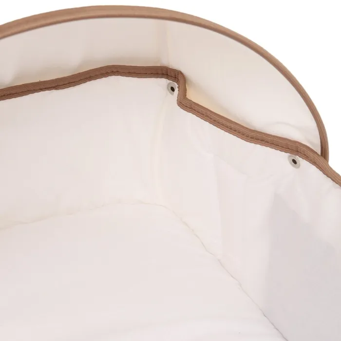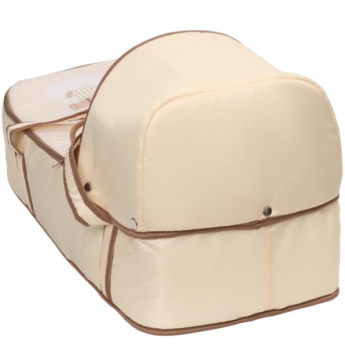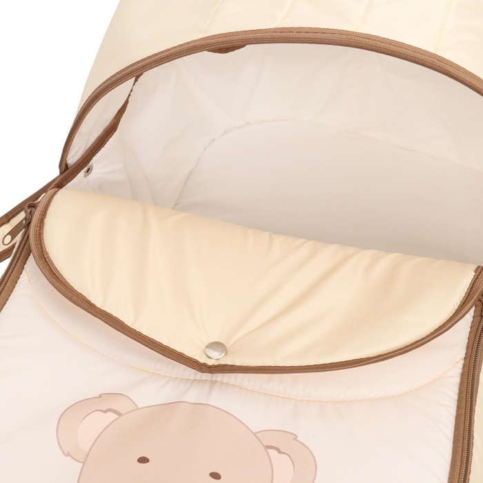 Люлька имеет съемный козырек/капюшон на кнопках, который помогает защитить вашего малыша от дождя, ветра и солнца. Так же люлька дополнительно оснащена ветрозащитным отворотом. Накидка на двух молниях поможет легко и удобно поместить малыша в переноску либо вынуть его из неё. Для большего комфорта и удобства в дно переноски вставлена жесткая вставка из ДВП. Мягкие ручки позволят рукам не испытывать дискомфорт при транспортировке.