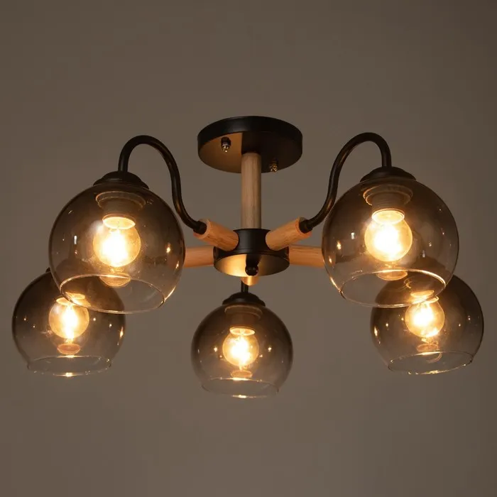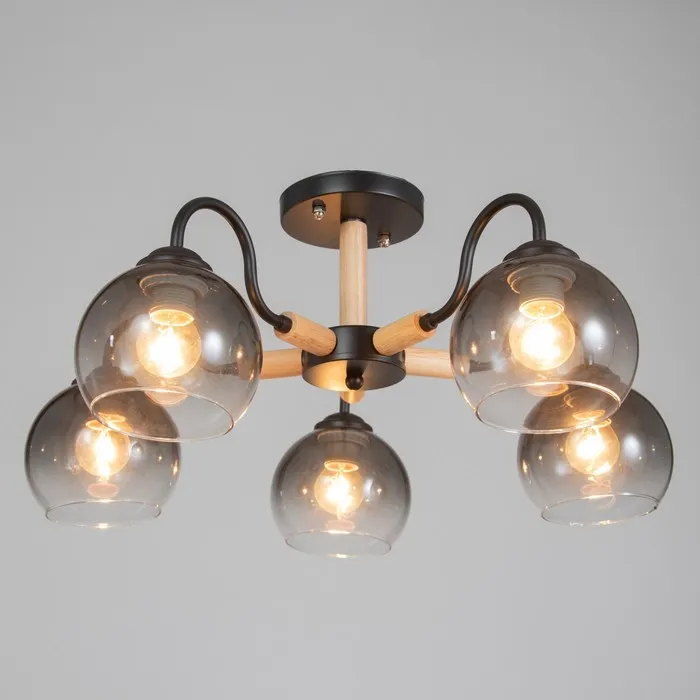 Люстра 1088/5BK 40Вт Е27 черный-светлое дерево 56х56х28 см BayerLux — Характеристики