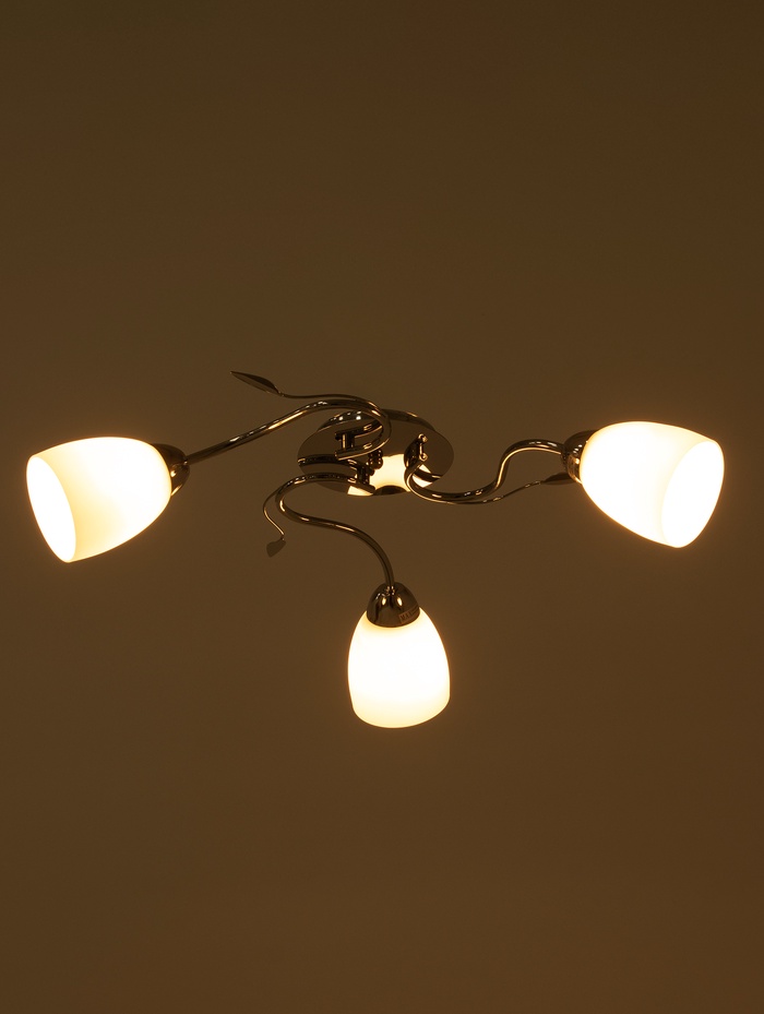 - Три плафона конической формы: Стеклянные рассеиватели направляют свет вниз, обеспечивая яркое освещение без бликов. В каждую лампу можно установить классическую лампу накаливания, современную светодиодную или филаментную лампу мощностью до 60 Вт.