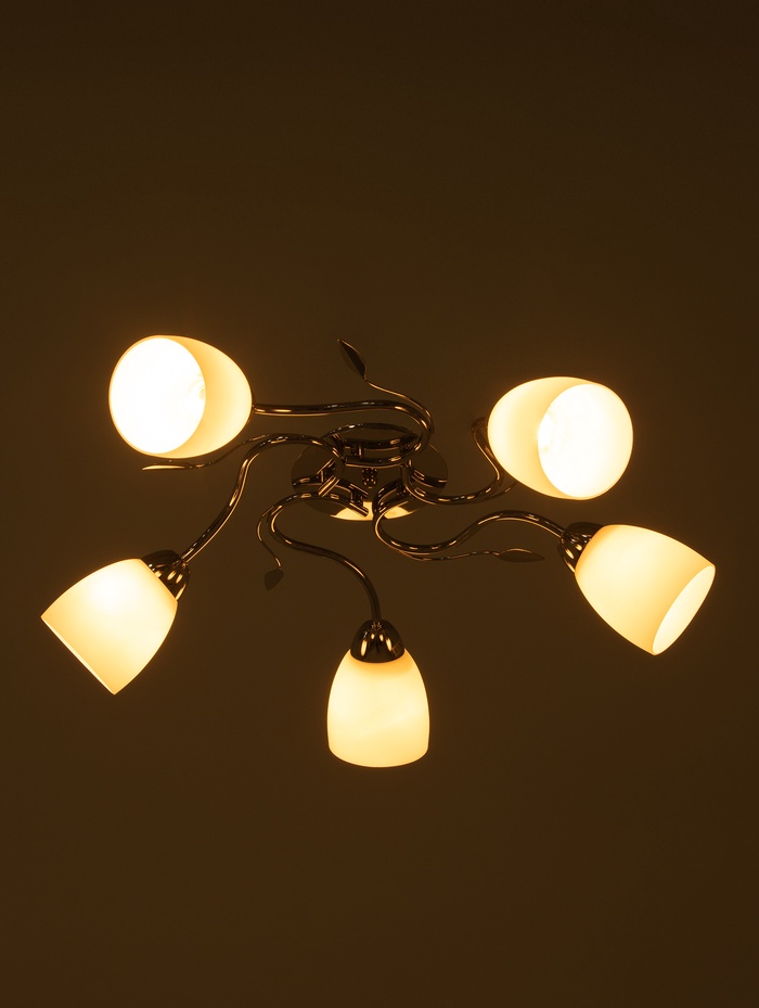 - Гибкость в выборе ламп: В люстре установлены цоколи E27. Вы можете выбрать лампы накаливания, энергосберегающие или современные филаментные лампы. Это дает контроль над атмосферой в комнате — от теплого до нейтрально-белого света.