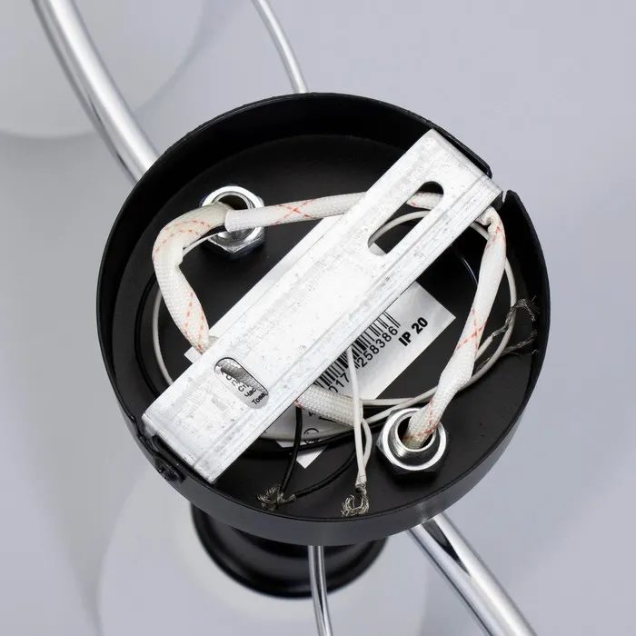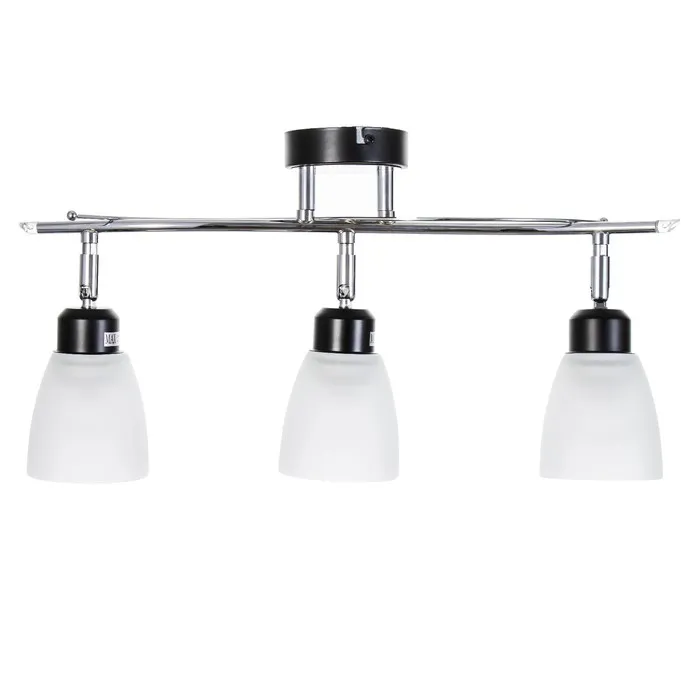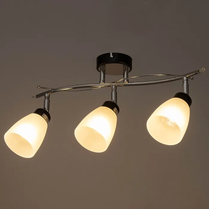 Свет, который подчёркивает стиль и работает на функциональность! Потолочная люстра с тремя белыми стеклянными плафонами и чёрно-хромовым каркасом — это современное освещение для тех, кто ценит контрастный дизайн и равномерное распределение света. Подходит для гостиной, спальни, кухни, прихожей или уютного заведения площадью до 6 м².
