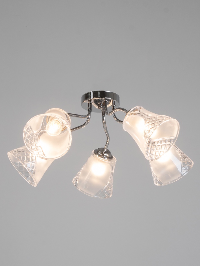 Практичность и эстетика: Люстра сочетает нейтральный дизайн с практичной схемой освещения. Пять плафонов решают задачу основного света в комнате, а металлическое основание гарантирует долговечность. Вы получаете осветительный прибор, который служит годами, сохраняя актуальный внешний вид. Эта модель — разумный выбор для тех, кто ценит простые и проверенные решения в освещении.