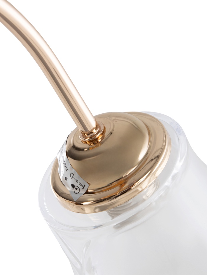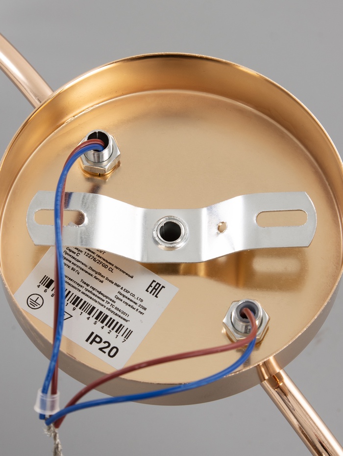- Современный дизайн: Золотистое металлическое основание сочетается с пластиковыми плафонами трапециевидной формы. Такая комбинация создает сдержанный и элегантный образ, который дополнит классический и современный интерьер.