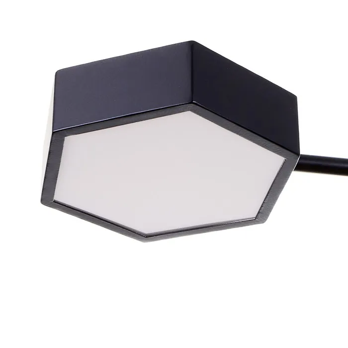 - Направленный свет вниз: Шестиугольные чёрные плафоны в тёмных тонах фокусируют свет строго вертикально, минимизируя рассеяние. Обеспечивает равномерное покрытие пола и центральных зон без теней.