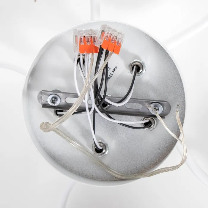 Благодаря продуманному дизайну, люстра сочетает в себе функциональность и эстетику. Металлическое белое основание сохраняет презентабельный внешний вид долгие годы. Пластиковые плафоны легко очищаются от пыли, облегчая уход за светильником.