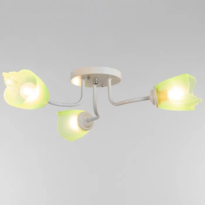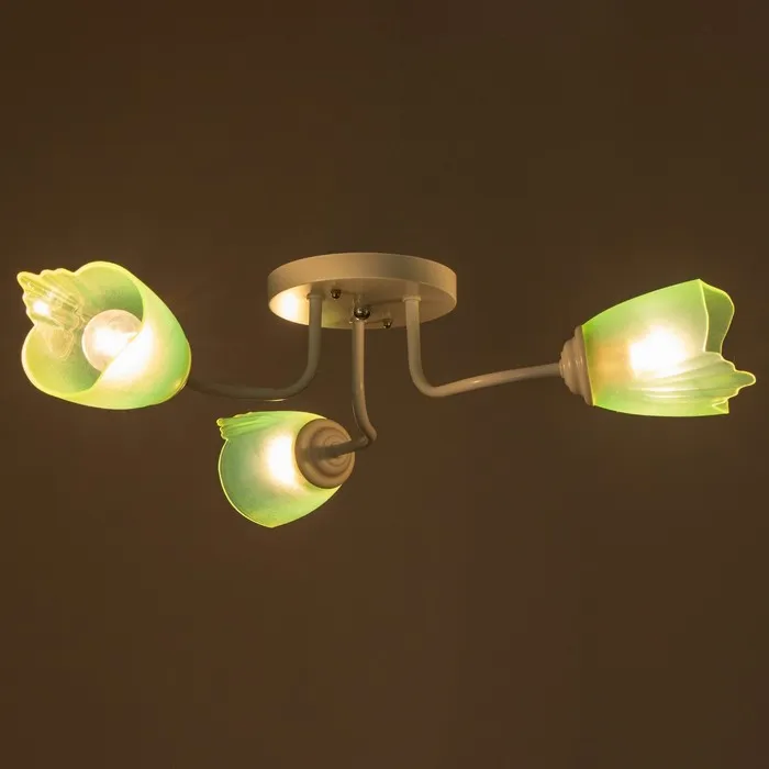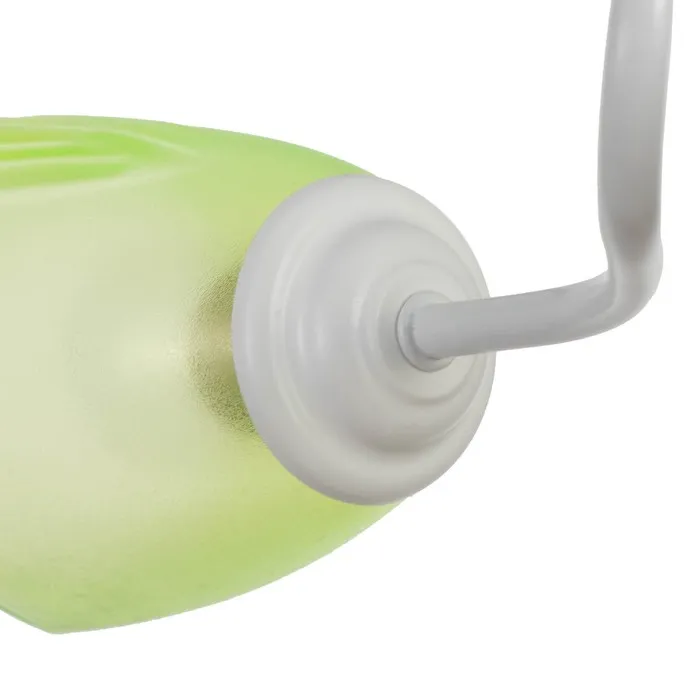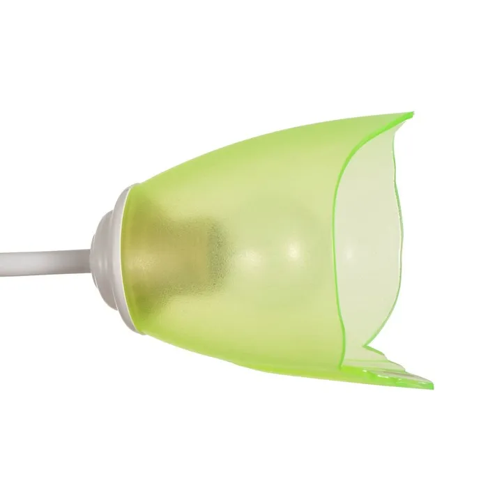Благодаря продуманному дизайну, люстра сочетает в себе функциональность и эстетику. Металлическое белое основание сохраняет презентабельный внешний вид долгие годы. Пластиковые зелёные плафоны легко очищаются от пыли, облегчая уход за светильником.
