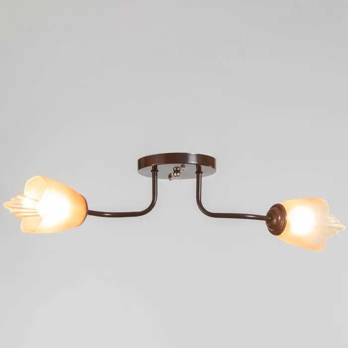 Потолочная люстра «1341003/2BR» с коричневым основанием и коньячными плафонами станет стильным решением для освещения спальни, гостиной или кухни. Минималистичный дизайн и функциональность делают её подходящей для разных интерьеров.