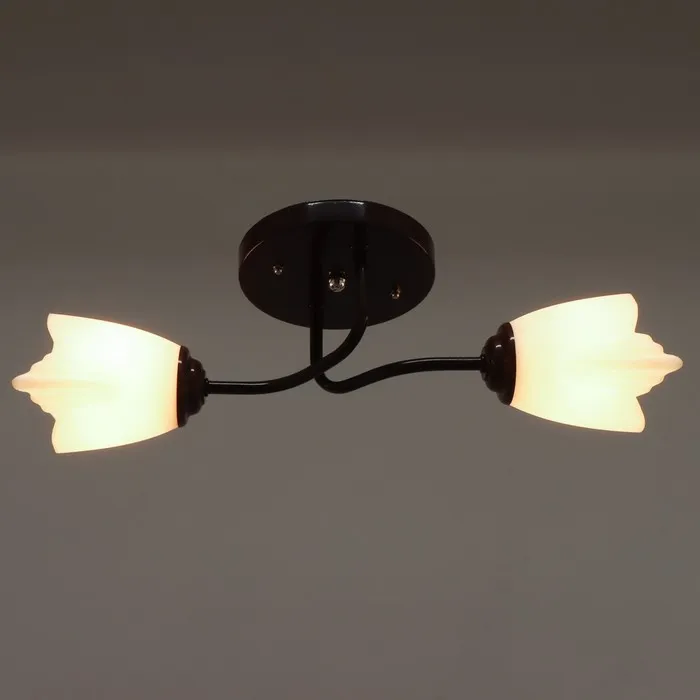 Потолочная люстра «1341003/2WT» с коричневым основанием и белыми плафонами станет стильным решением для освещения спальни, гостиной или кухни. Минималистичный дизайн и функциональность делают её подходящей для разных интерьеров.