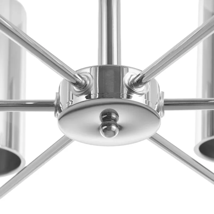 Свет, который подчеркивает стиль и равномерно заполняет пространство! Потолочная люстра с шестью цилиндрическими плафонами и хромированным каркасом — это мощное и технологичное освещение для гостиной, спальни, кухни или прихожей. Хайтек-дизайн, верхний свет и штанговая конструкция делают её частью современного интерьера площадью до 12 м².