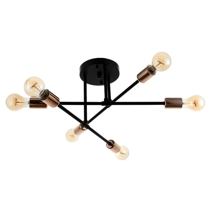 - Пять ламп E14, до 40 Вт каждая: Поддерживает стандартные лампы накаливания, но рекомендуется использовать светодиодные — они безопасны для натяжных потолков, не перегреваются и служат дольше. Лампы с эффектом пламени усиливают винтажный характер светильника.