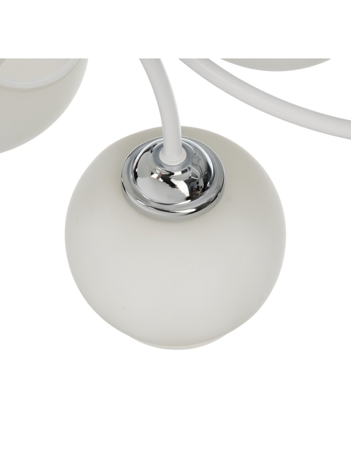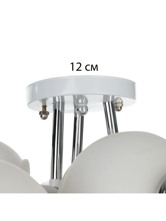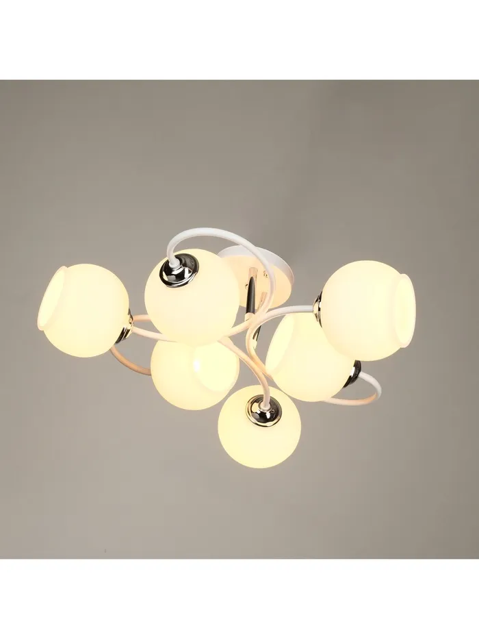 - Белые стеклянные шары, свет рассеивается равномерно: Форма плафонов обеспечивает мягкое, объёмное освещение без резких теней. Такое свечение идеально подходит для зон отдыха, где важна комфортная атмосфера.